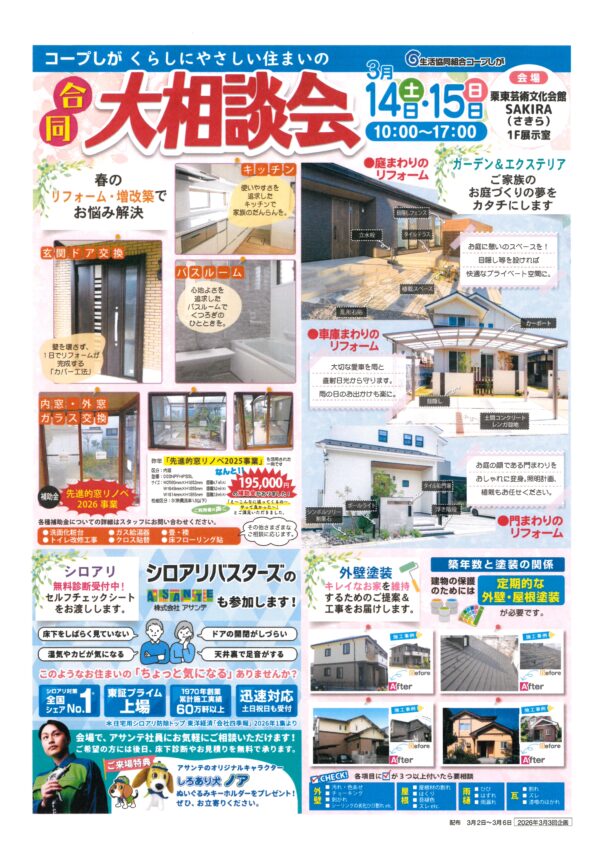 日頃の感謝の気持ちを込めまして、来る 3月14日(土)・15日(日) の2日間に「合同大相談会」を開催いたします。